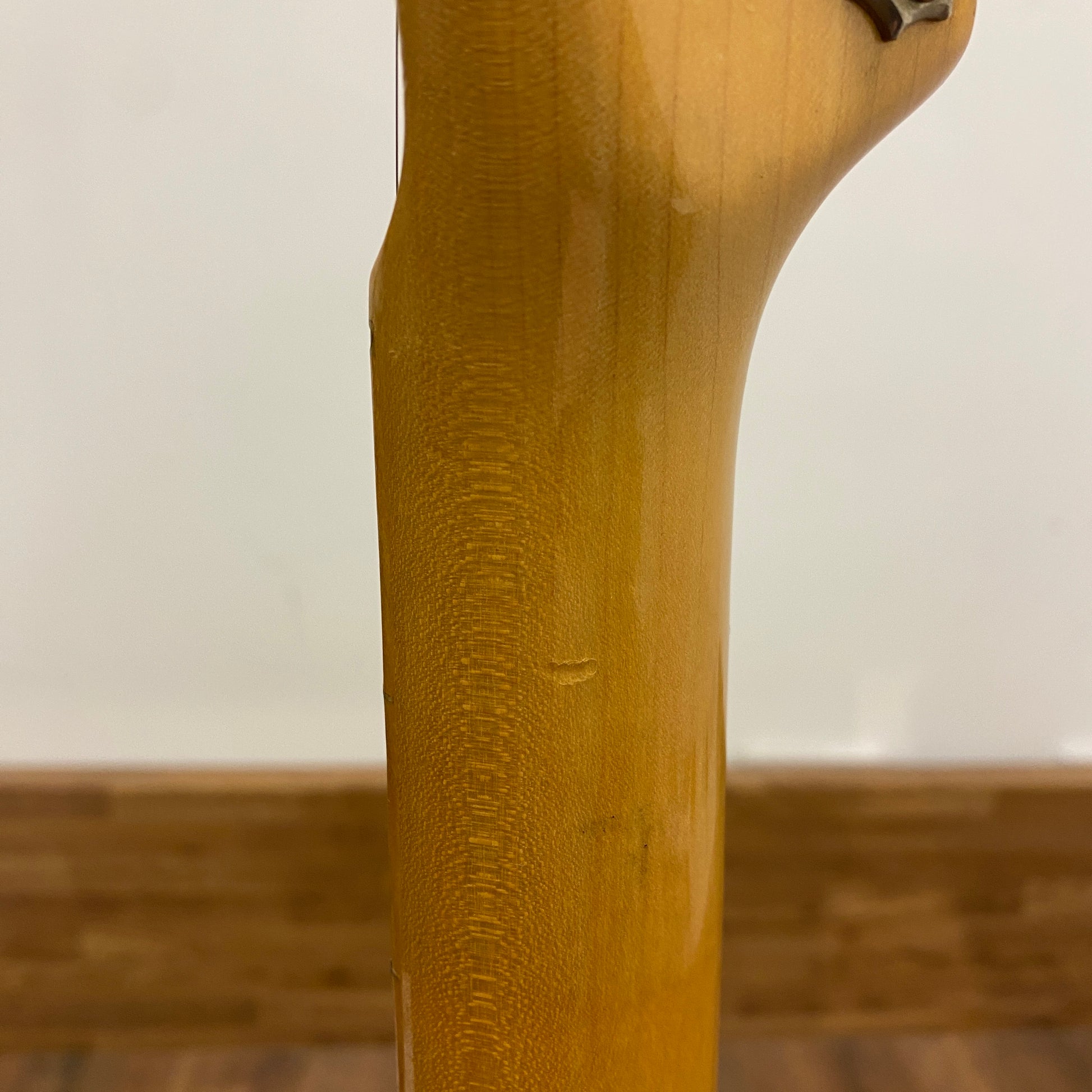 There is some mild fret wear - especially on the lowest frets but nothing that causes choking. The nut is very low which makes it an absolute breeze to play, but can sound slightly rattly on open chords when played hard acoustically. When amplified all notes ring well. As it stands this works well for me, but may not suit a heavy player straight out the gate! As this could be somewhat preferential we have opted to keep it original.